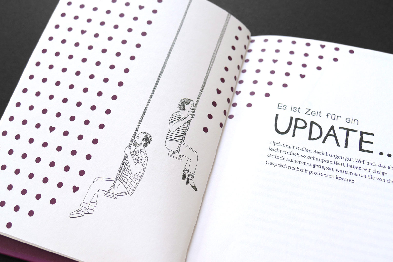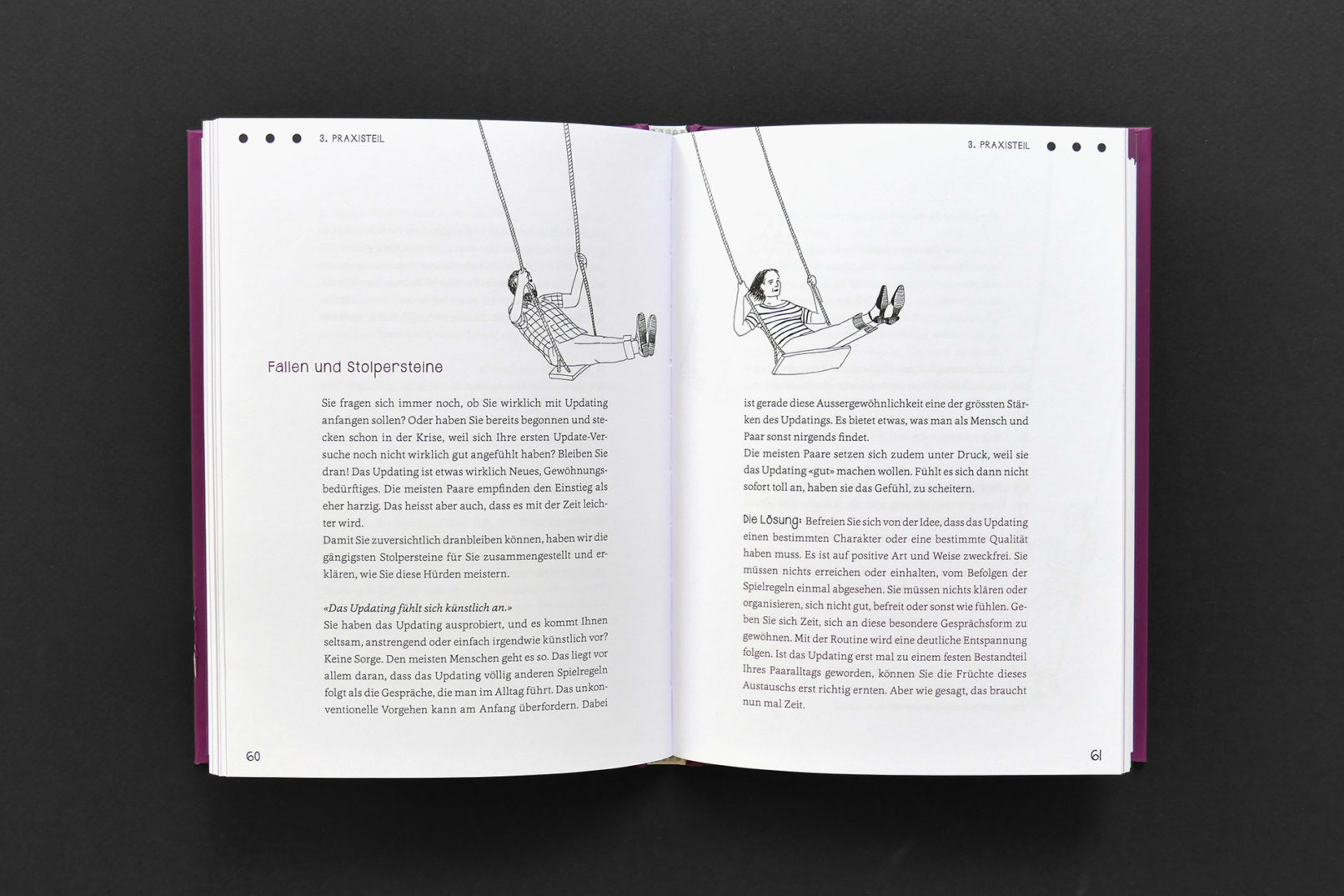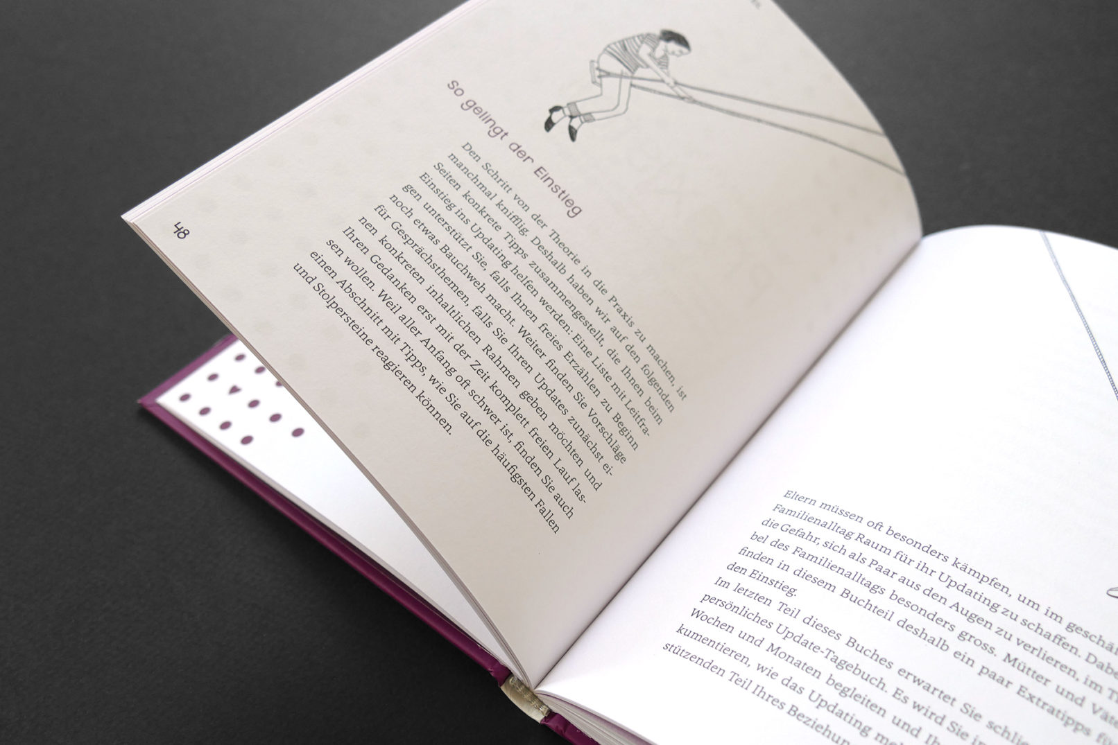 Als Paar langfristig im Gespräch bleiben ist eine Herausvorderung. Dieses Buch der Beobachter-Edition stellt eine Gesprächsmethode vor und unterstützt ebenfalls bei der Anwendung. Für dieses Buch haben wir in Zusammenarbeit mit dem Verlag das Gestaltungskonzept entwickelt und umgesetzt. Die Bilder dazu durften wir ebenfalls illustrieren.