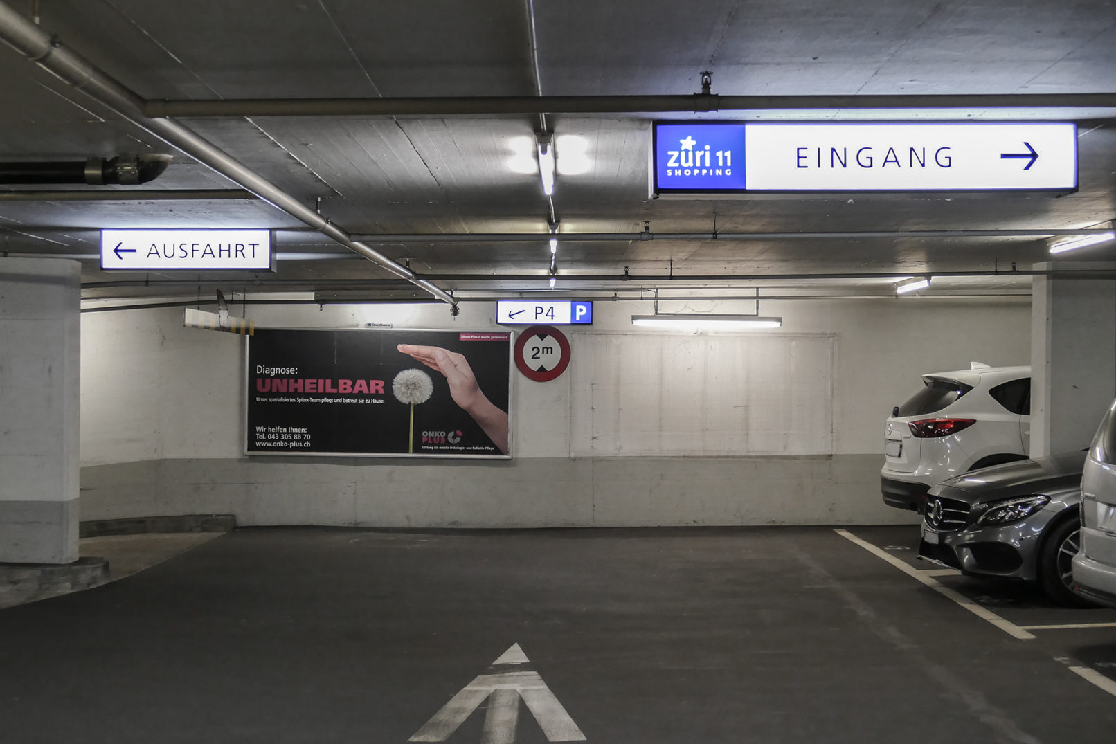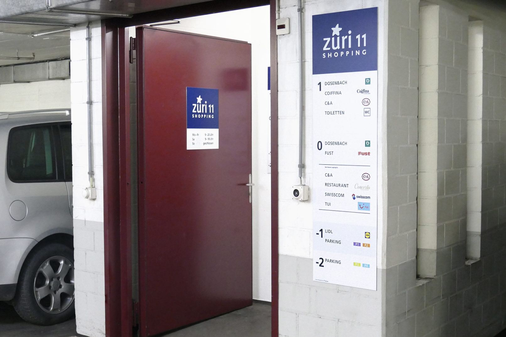 Im Einkaufszentrum Züri11 in Oerlikon durften wir die neue Wegführung gestalten. Dazu gehörte die neue Beschriftung des Gebäudes ausserhalb, des Parkhauses und im Gebäudeinnern die Übersicht der verschiedenen Läden.